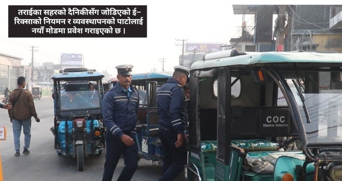 लिखित परीक्षाको प्रावधान हटाएर तराईका सहरको दैनिकीसँग जोडिएको ई–रिक्साको नियमन र व्यवस्थापनको पाटोलाई नयाँ मोडमा प्रवेश गराइएको हो । ई–रिक्सा यात्रुका लागि सस्तो, सहज र छिटो सवारीसाधनका रूपमा चिनिन्छ । सहरलाई चलायमान बनाइरहेका ई–रिक्साको वैधानिकतासँग जोडिएको गम्भीर र दीर्घकालीन समस्या भने अब कोशी प्रदेशमा समाधान भएको छ ।