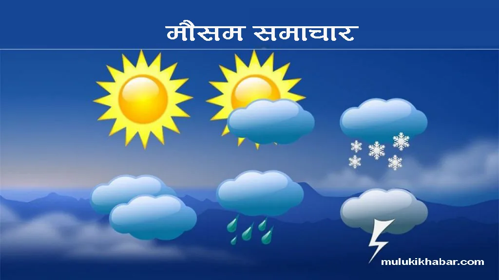 राति, देशका हिमाली भूभागमा साधरणतया बादल लाग्ने, पहाडी भूभागमा आंशिक बादल लाग्ने र तराई भूभागमा मौसम मुख्यतया सफा रहनेछ । कोसी, गण्डकी र कर्णाली प्रदेशको हिमाली भूभागका एक–दुई स्थानमा हल्का वर्षा / हिमपातको सम्भावना रहेको विभागले जनाएको छ ।