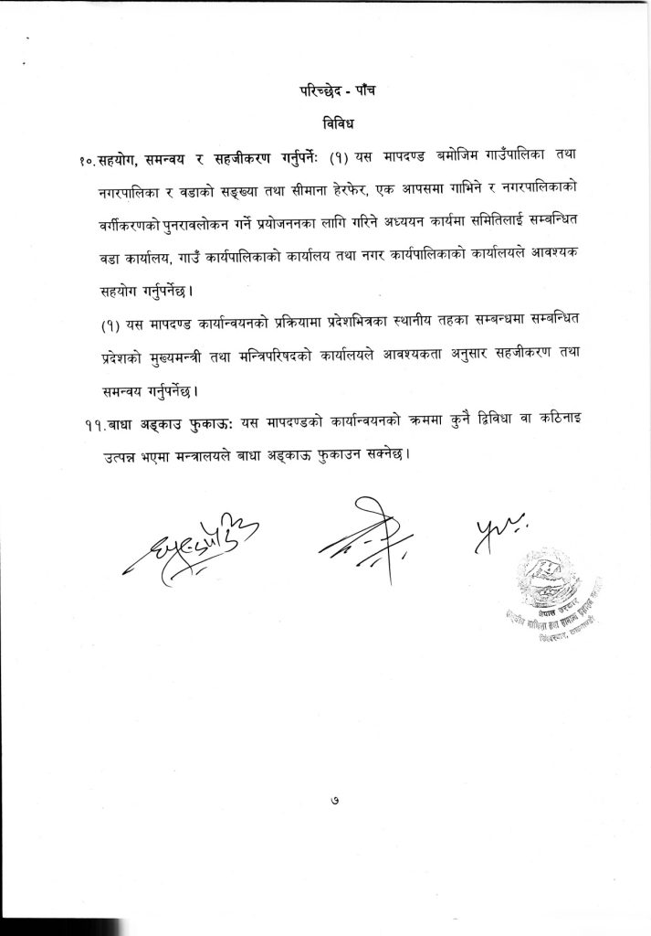 काठमाडौँ । संघीय मामिला तथा सामान्य प्रशासन मन्त्रालयले गाउँपालिका, नगरपालिका र वडाहरूको संख्या तथा सिमाना हेरफेर गर्ने प्रक्रियालाई व्यवस्थित बनाउन नयाँ मापदण्डको मस्यौदा तयार पारेको छ ।