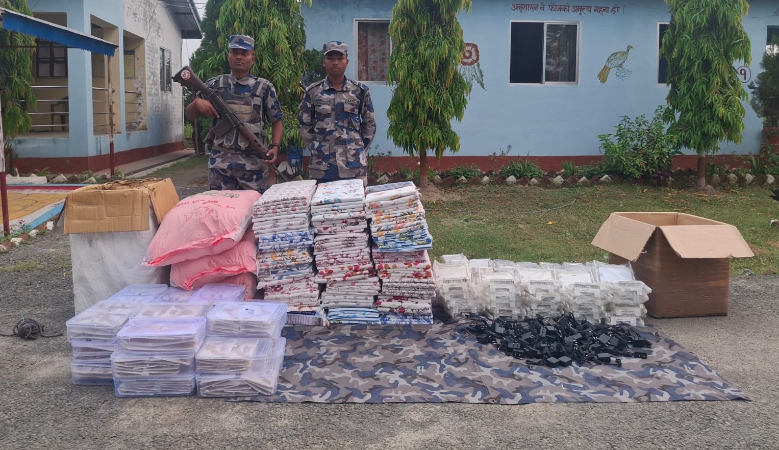 सशस्त्र प्रहरीका अनुसार बरामद गरिएका सामानहरूमा १२० सेट डबल बेडको तन्ना, १०० थान वाईफाई राउटर र चार्जर, ३०० पिस नक्कली गहना र ४ बोरा सुर्ती रहेका छन्।  बरामद गरिएका यी सामानहरूको बजार मूल्य करिब ७ लाख ३० हजार रुपैयाँ बराबर रहेको अनुमान गरिएको छ ।