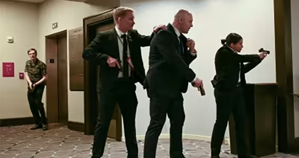 बीबीसीले जनाएअनुसार गोली चलेको आवाज सुनिएलगत्तै सुरक्षाकर्मीहरूले ट्रम्प र उनकी पत्नीलाई कार्यक्रमस्थलको मञ्चबाट तुरुन्तै बाहिर लगेका थिए । त्यसपछि उच्च सुरक्षा टोली ‘काउन्टर असल्ट टिम’का हतियारधारी सदस्यहरू मञ्चमा उभिएर हलको पछाडि तर्फ लक्षित गर्दै सुरक्षा घेरा कडा पारेका थिए ।