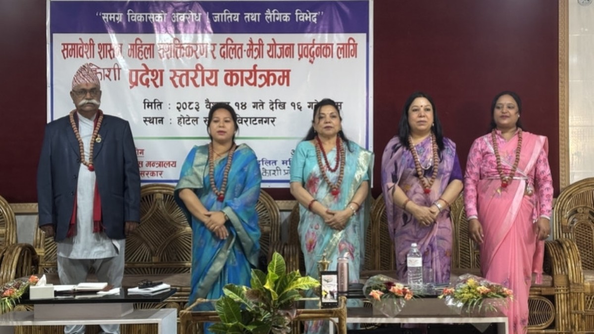 विराटनगर । कोशी प्रदेशमा समावेशी शासन, महिला सशक्तीकरण र दलितमैत्री नीति कार्यान्वयनलाई केन्द्रमा राख्दै १४ जिल्लाका दलित महिलाहरूको तीन दिने कार्यशाला विराटनगरमा जारी छ ।