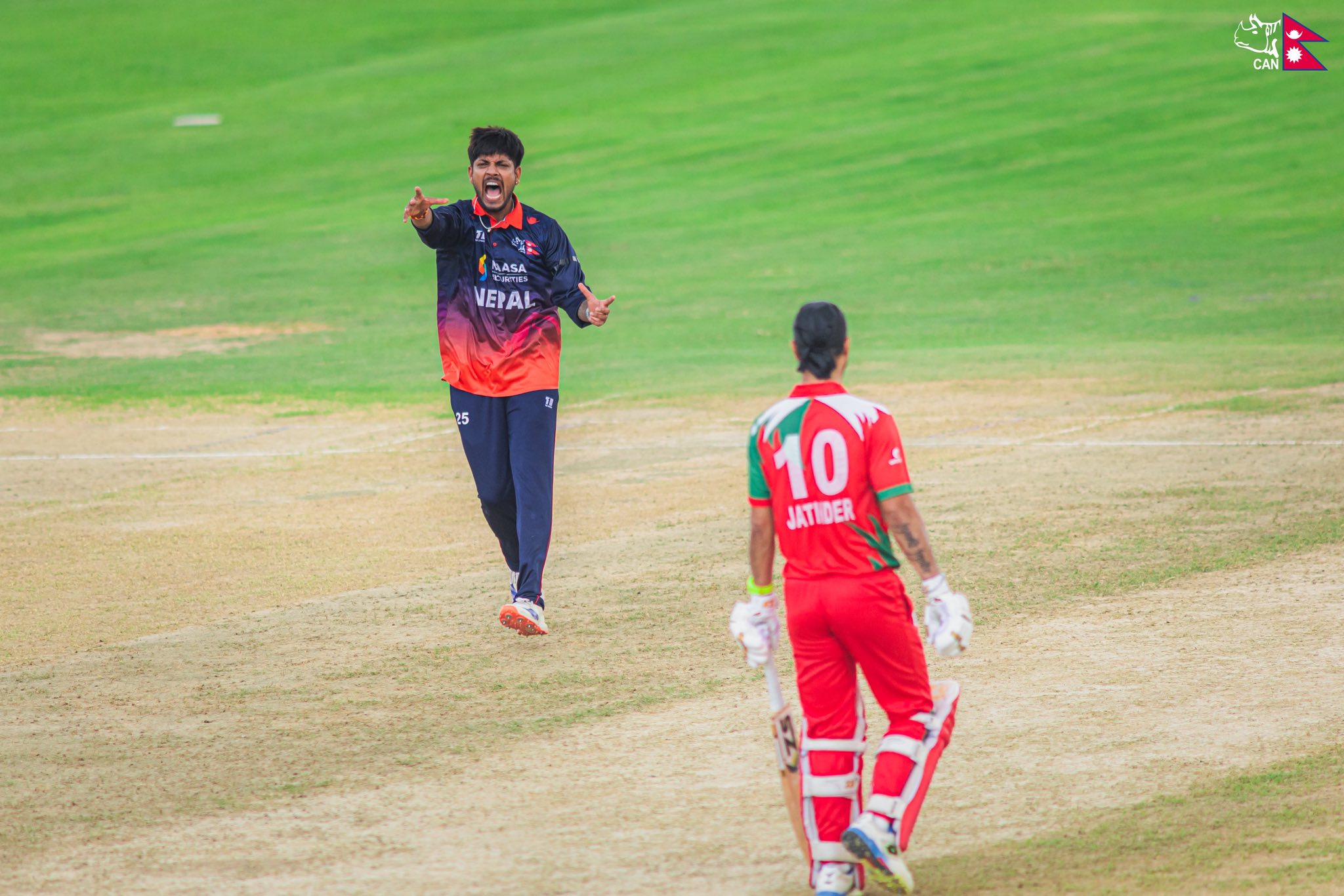 जितेन रमानन्दीले ४३, आर्यान बिश्टले ३५, हम्माद मिर्जाले ३०, विनायक शुक्ला र आशिष ओडेदाराले २३–२३ रन जोडे ।